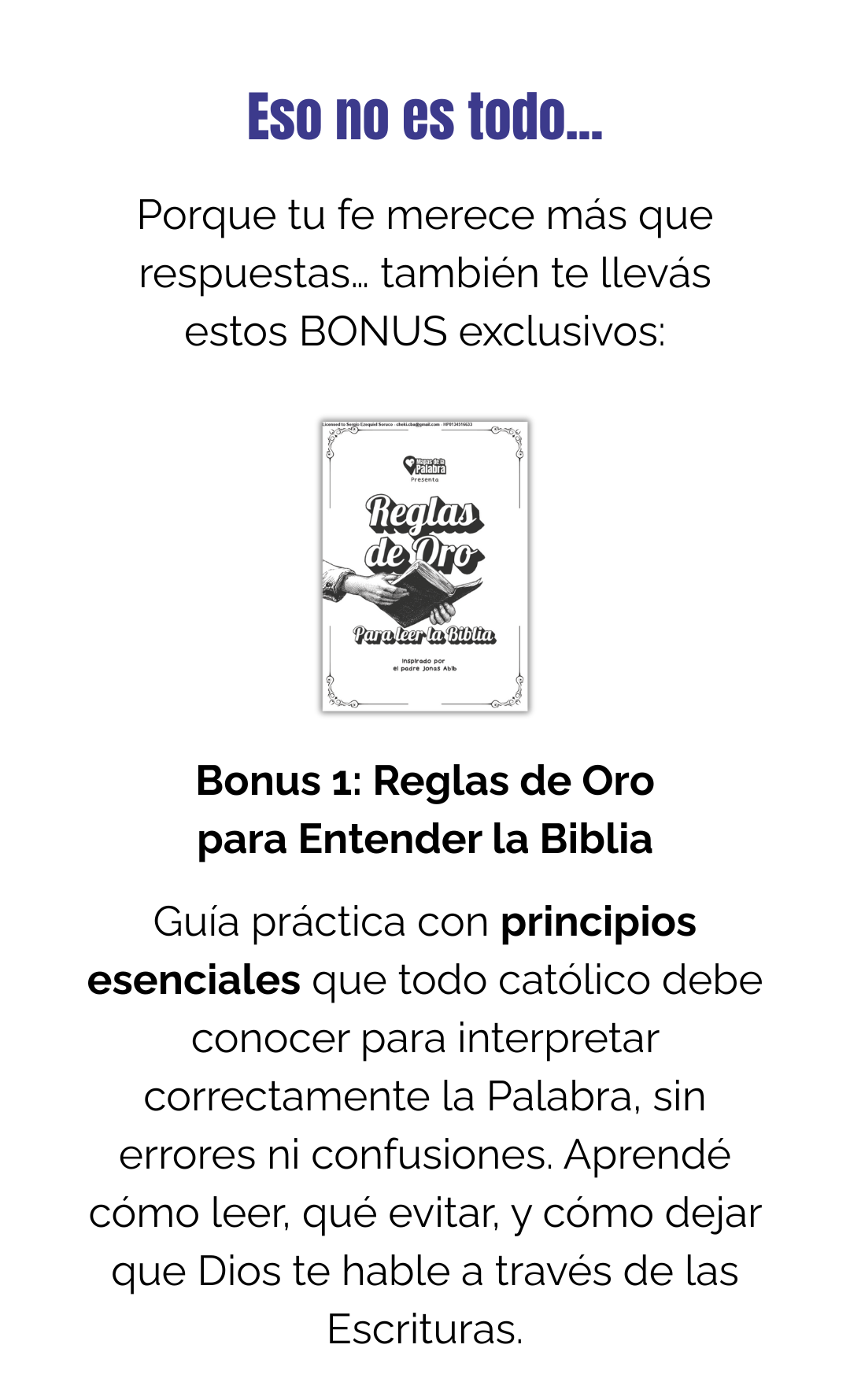 Si durante ese tiempo sentís que el contenido no te aporta claridad, no mejora tu seguridad al hablar de tu fe, o simplemente no es lo que esperabas, podés solicitar la devolución — y te reintegramos el 100% de tu dinero, sin preguntas, sin explicaciones.